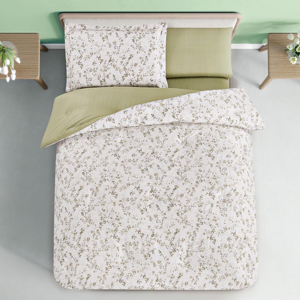 مفرش قطن صيفي مفرد ونص ٤ قطع - نولين -سكري - اخضر