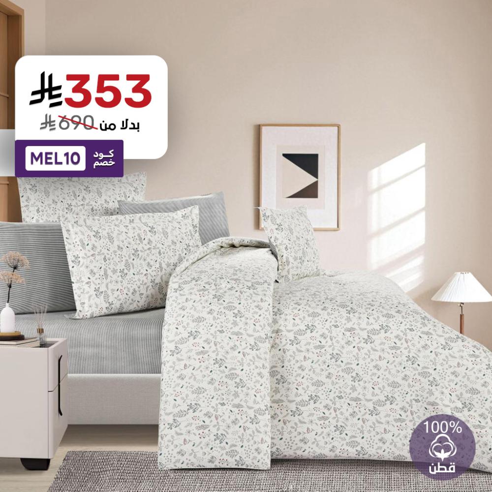 مفرش قطن صيفي مقاس كوين 8 قطع – نوفارين | برودة القطن وراحة متجددة
