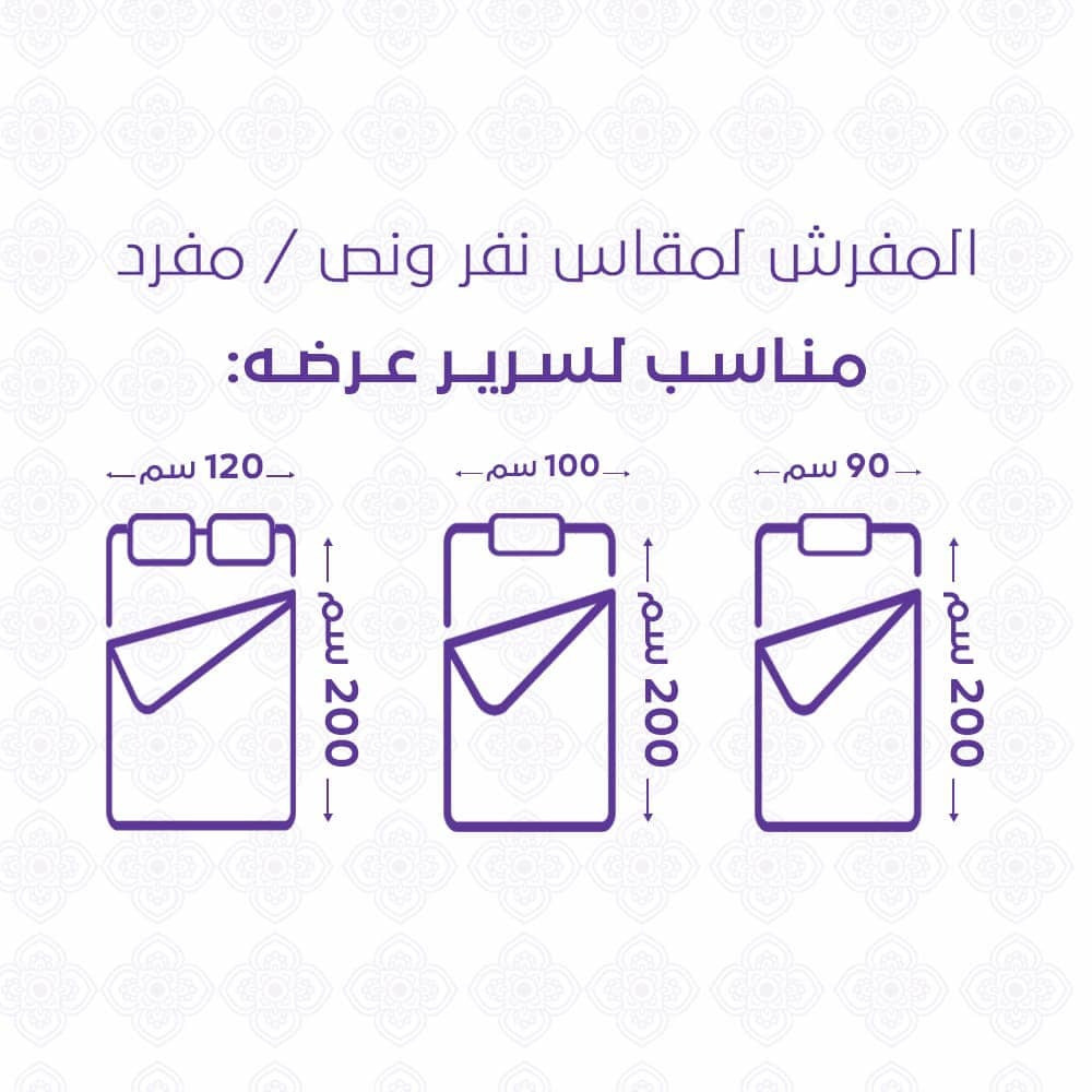 1- شرشف مغاط: الطول 200 سم العرض 120 سم + 30 سم.