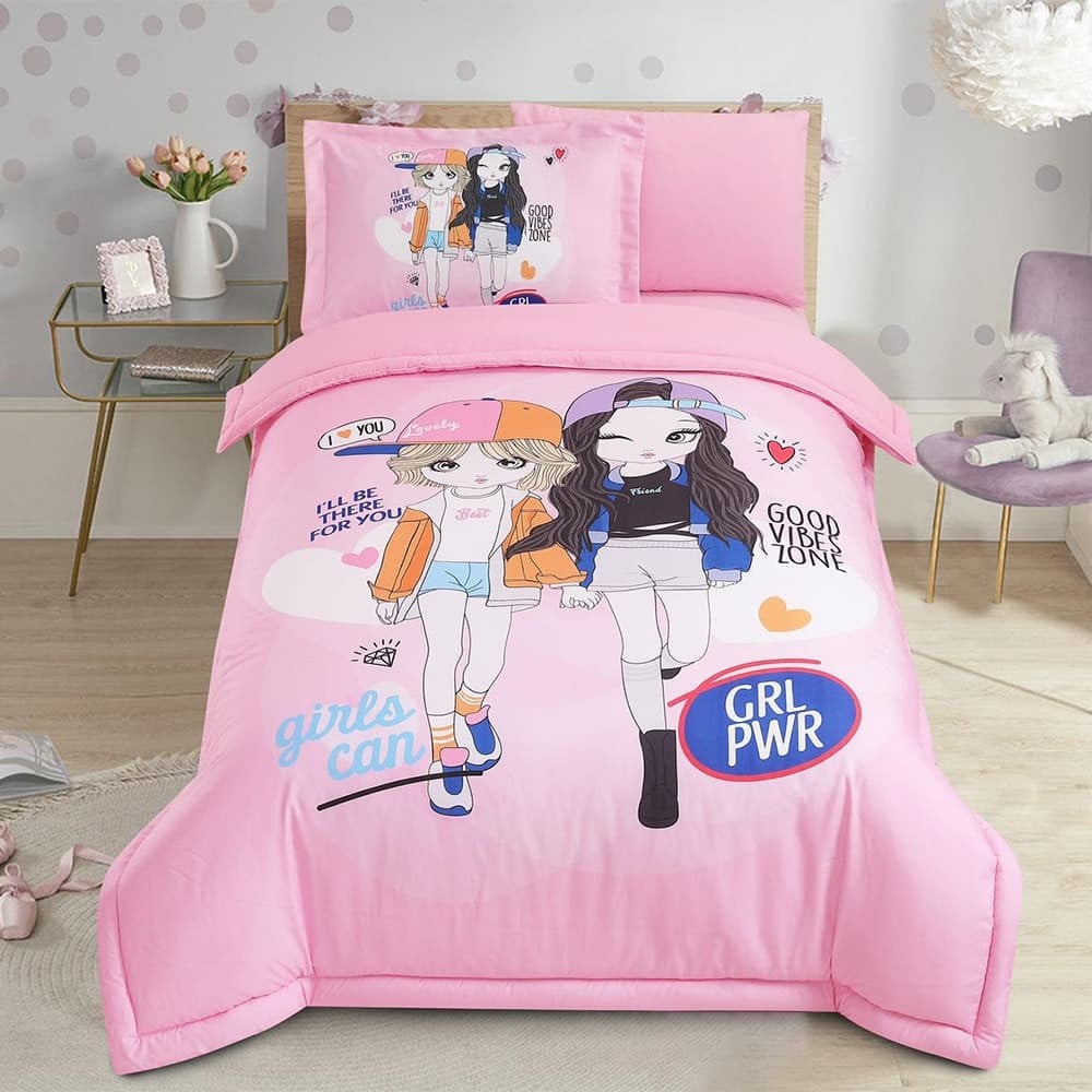 مفرش أطفال صيفي مفرد ونص 4 قطع - فابي - وردي
