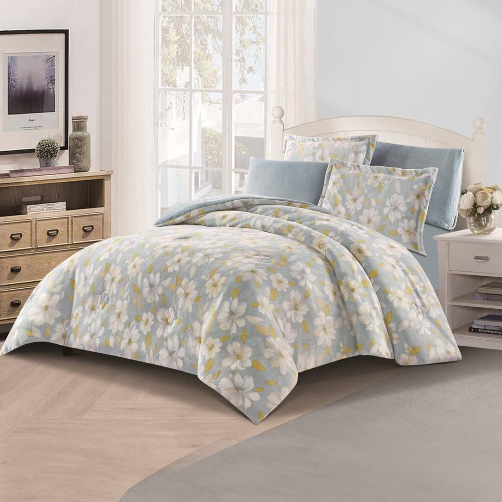 مفرش شتوي مخمل مفرد ونص 4 قطع - تالورا - رصاصي - أزرق ضبابي