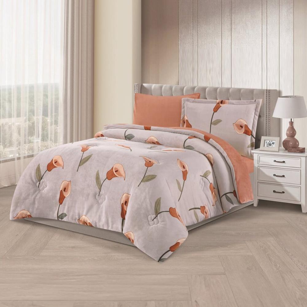 مفرش شتوي مخمل مفرد ونص 4 قطع - تالورا - رصاصي - خوخي