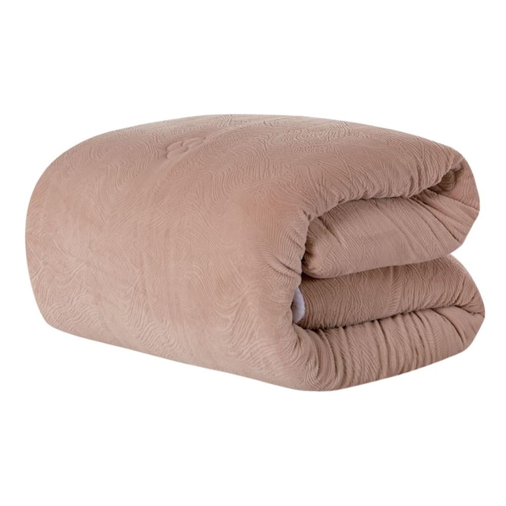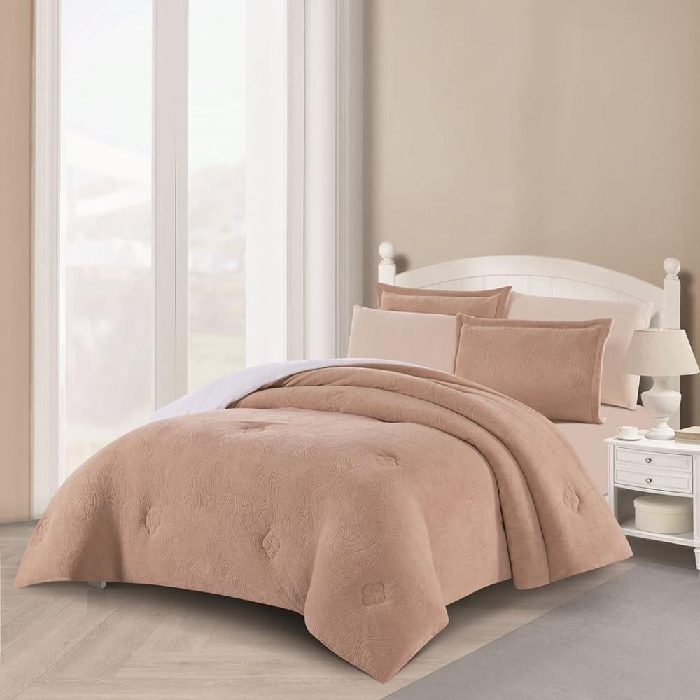 مفرش شتوي مزدوج مخمل فرو محفور 6 قطع - اورنيلا - بيج