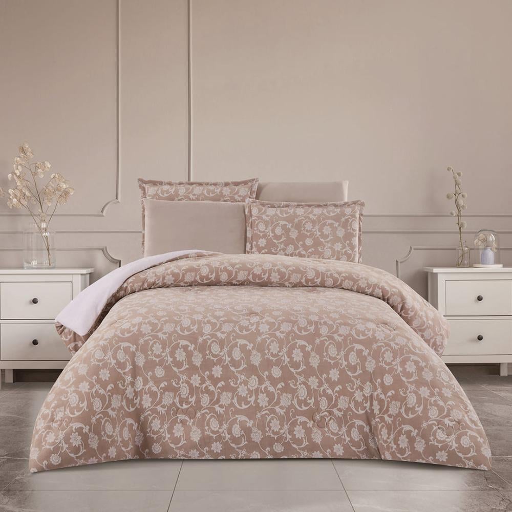 مفرش شتوي مزدوج مخمل فرو 6 قطع - اورنيلا - بيج غامق - بيج فاتح