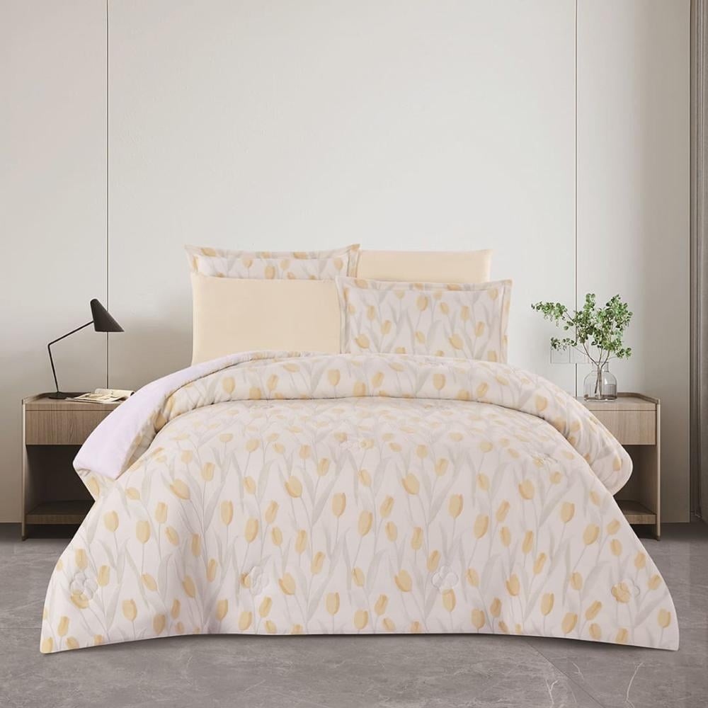 مفرش شتوي مزدوج مخمل فرو 6 قطع - نيكولينا - سكري - كريمي