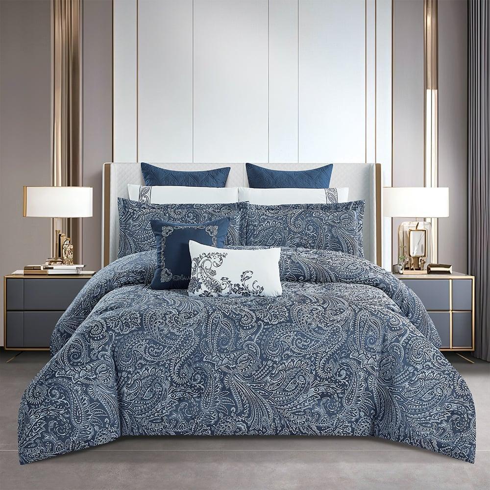 تم تصميم هذا المفرش من قماش الجاكار الفاخر بنقشة منسوجة بتصميم كلاسيكي هندسي، يجمع بين تفاصيل الروكوكو الفاخرة وتماثل زخرفي مستوحى من القصورالإيطالية تضفي طابعًا كلاسيكيًا دافئًا على غرفة نومك مع التطريز البارز اللذي يعطيك شعور الفخامة الملكية.