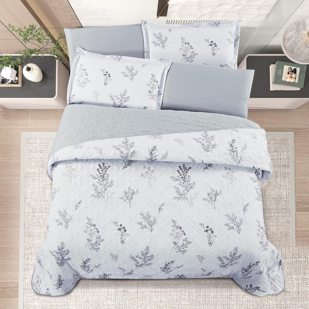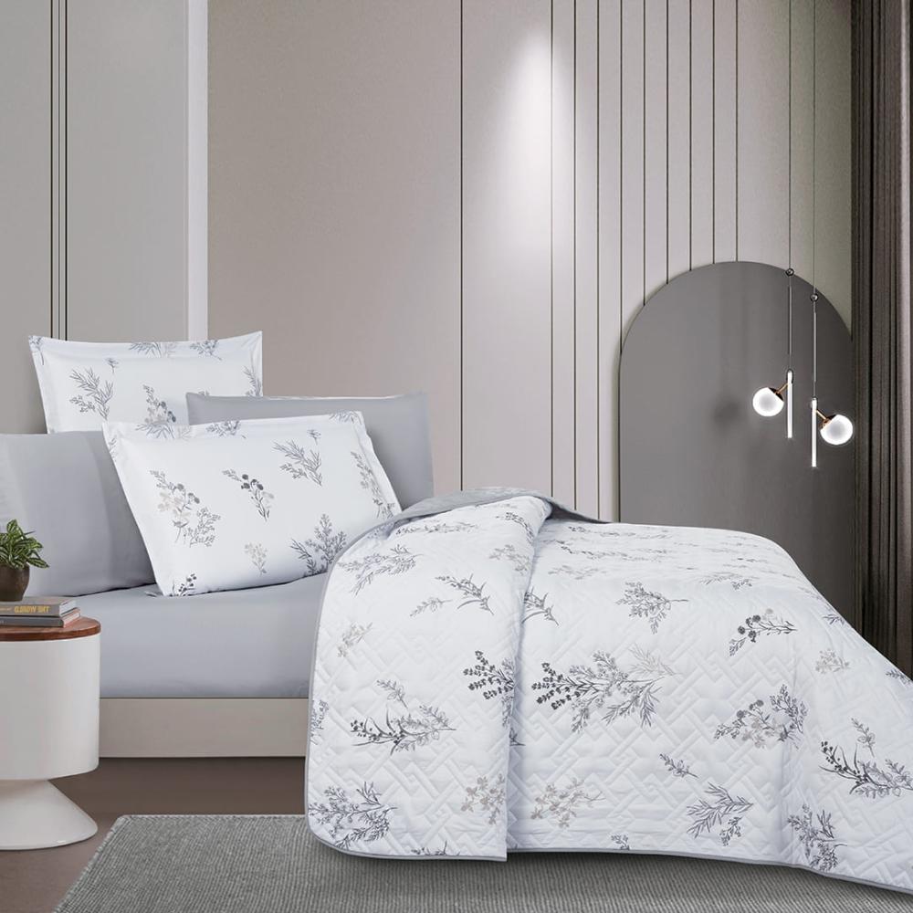 مفرش صيفي مزدوج حشوة مضغوطة 6 قطع - لونيا | نعومة مطلقة وأناقة بسيطة , مناسب للضيوف و الرحلات