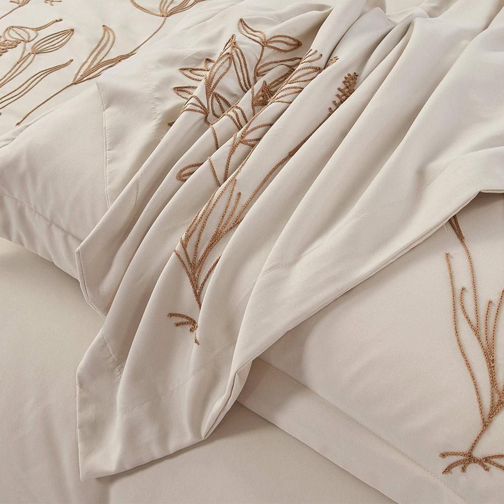 اختاري مفرش "يودوكيا" ليمنح سريرك لمسة ملكية بتطريزه الراقي وخامته الصيفية الخفيفة. تصميم يجمع بين الراحة والجمال، ويضفي على غرفتك طابعًا من الفخامة الهادئة.