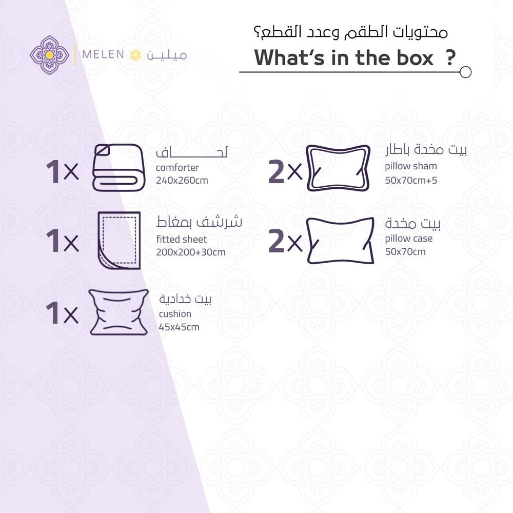 2-بيت مخدة : الطول 50 سم العرض 70 سم .