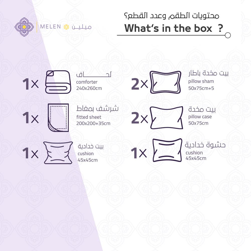 1- لحاف : الطول 240 سم العرض 260سم.