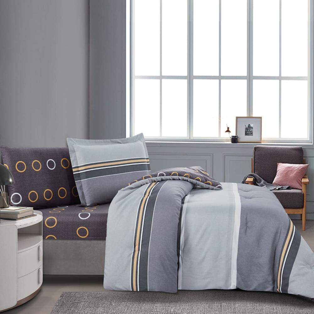 مفرش صيفي مفرد ونص 4 قطع - ليتون -رمادي - رصاصي