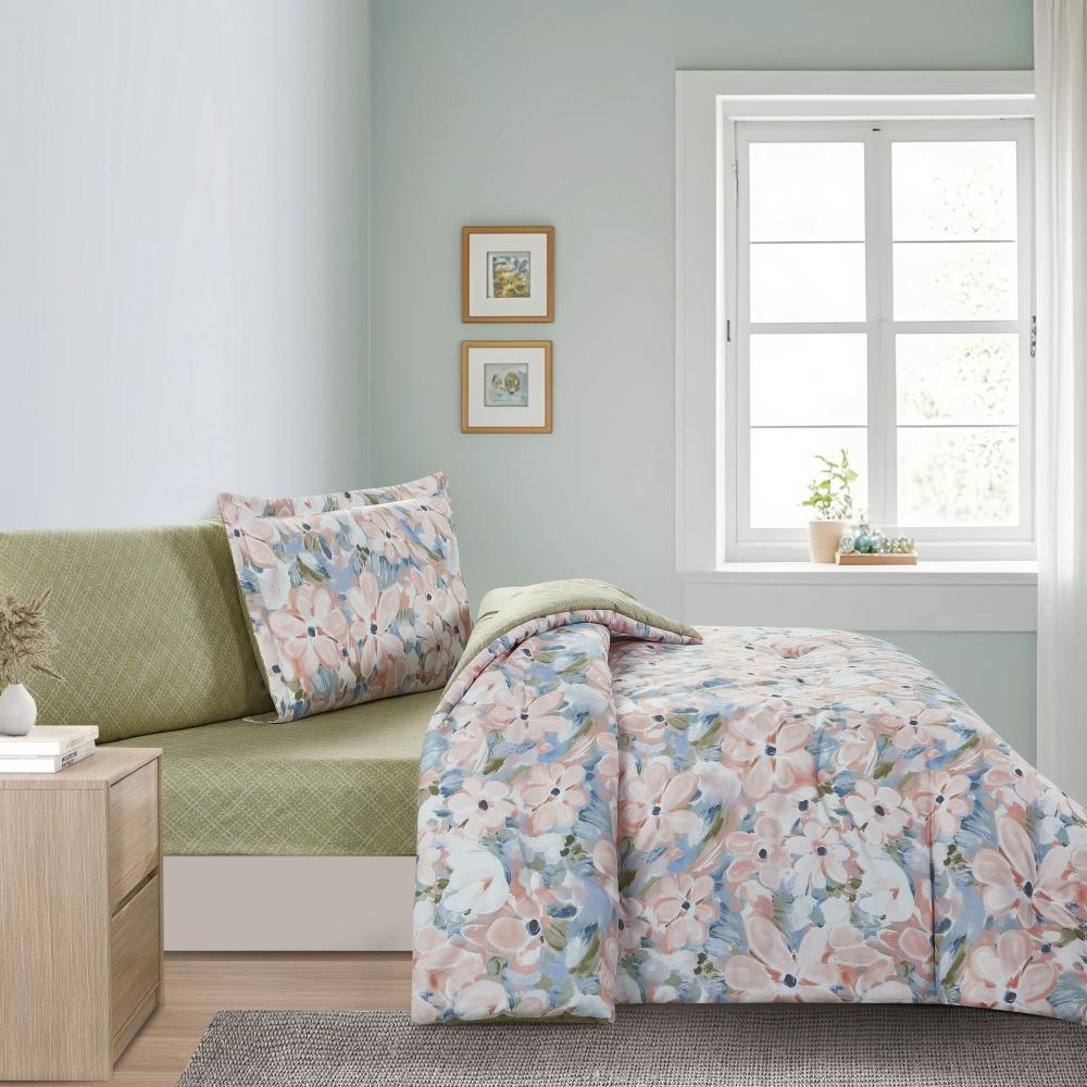 مفرش صيفي مفرد ونص 4 قطع - ليتون -زهري - اخضر