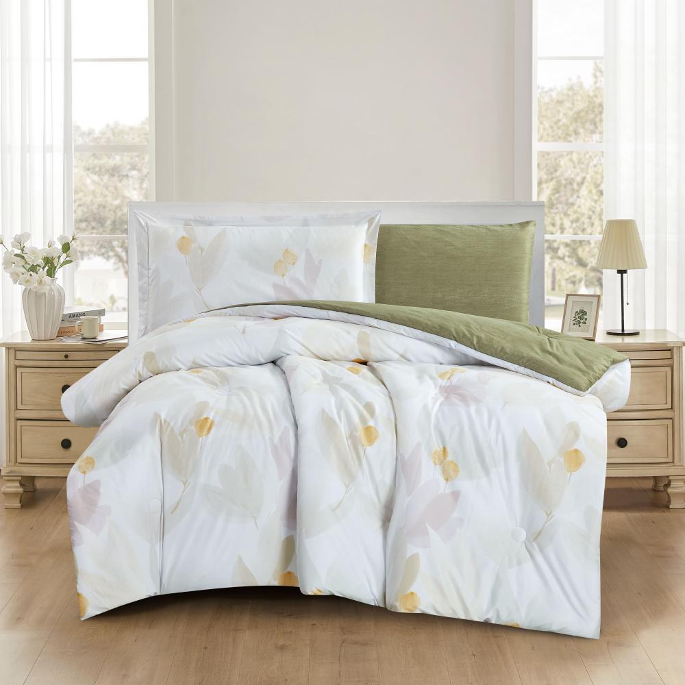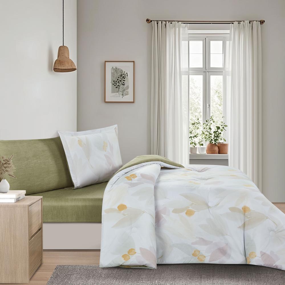 مفرش صيفي مفرد ونص 4 قطع - ليتون -كريمي- زيتي