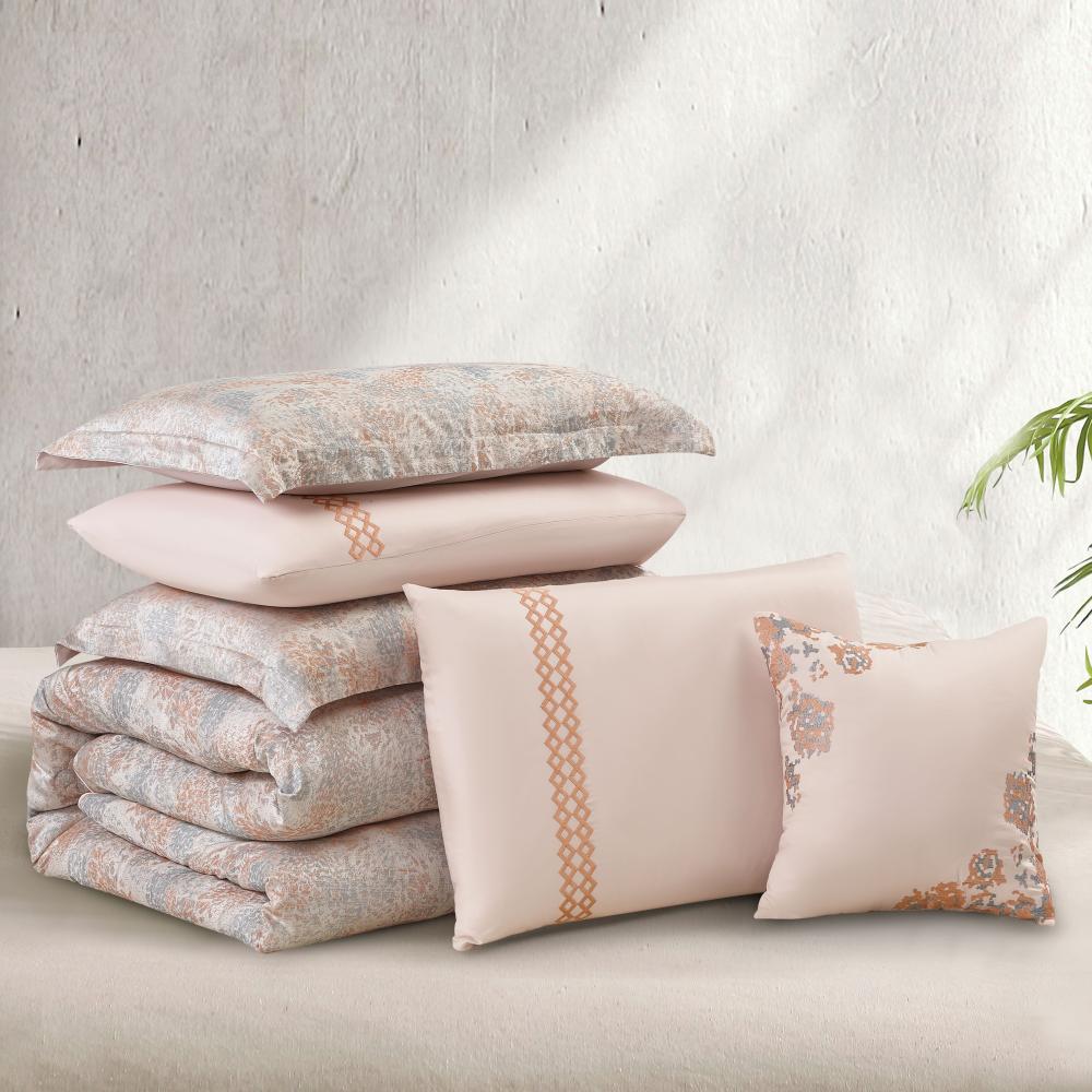 مفرش صيفي تنسيل قطن 300 غرزة محاك بتقنية الجاكار مزدوج 8 قطع – مالويرا
