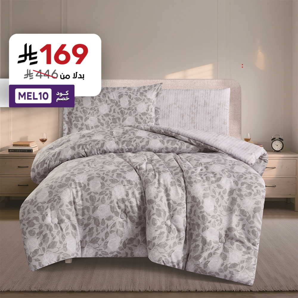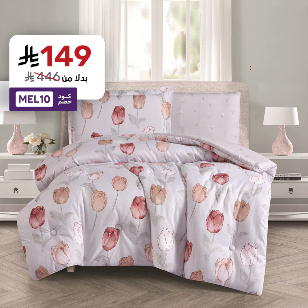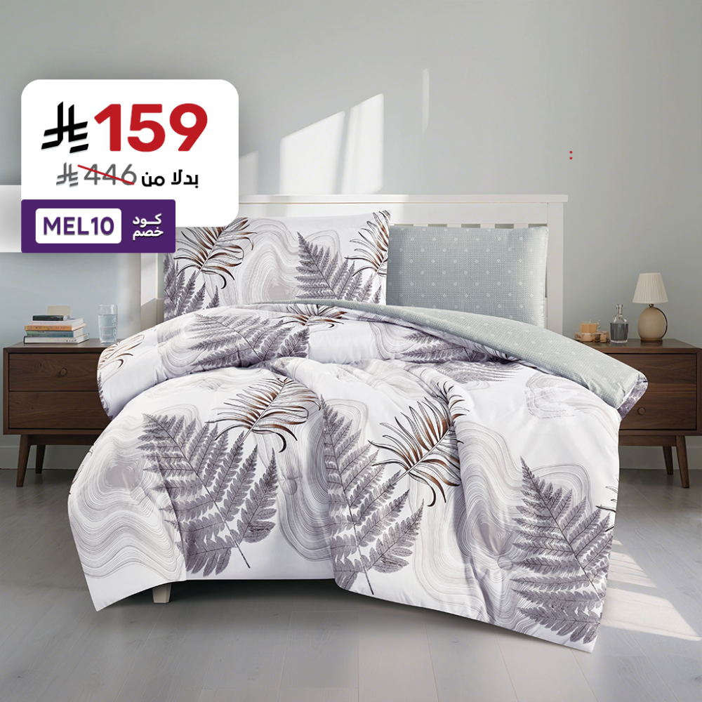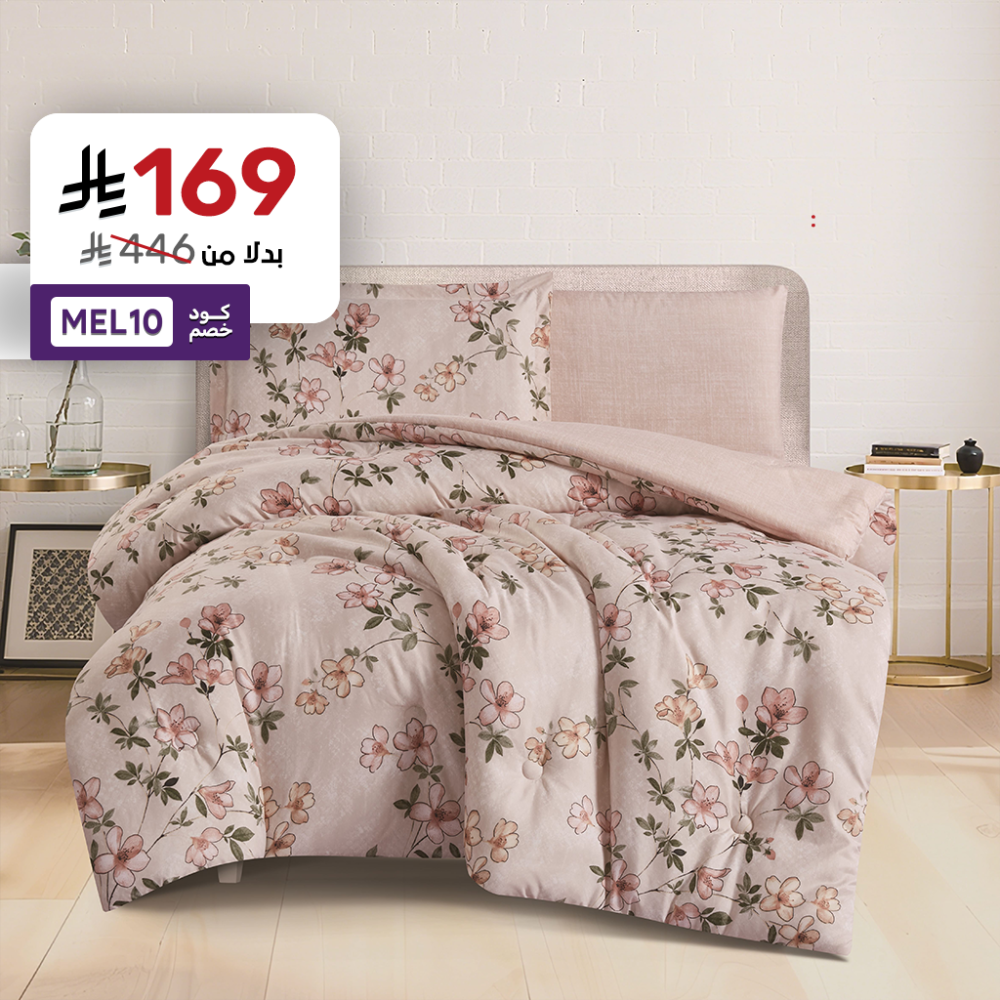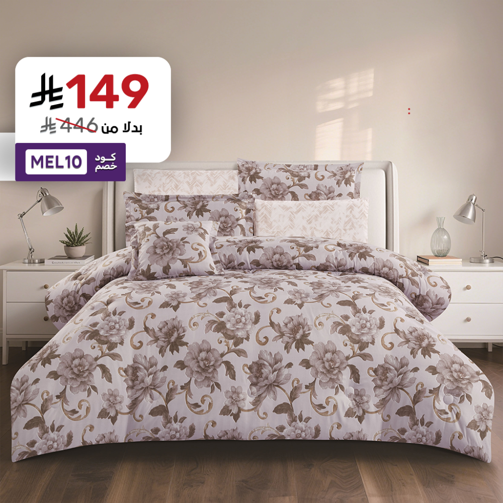 حوّل غرفة نومك إلى واحة من الراحة والجمال مع المفرش الصيفي الأنيق . صُمم بخامة ناعمة وخفيفة تمنحك برودة وانتعاش طوال الليل، مع تفاصيل أنيقة وألوان راقية تضيف لمسة سحرية لسريرك.