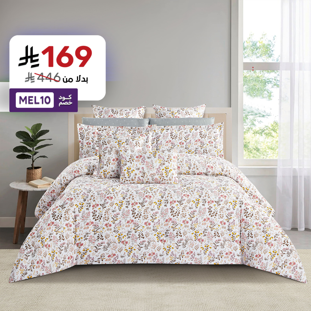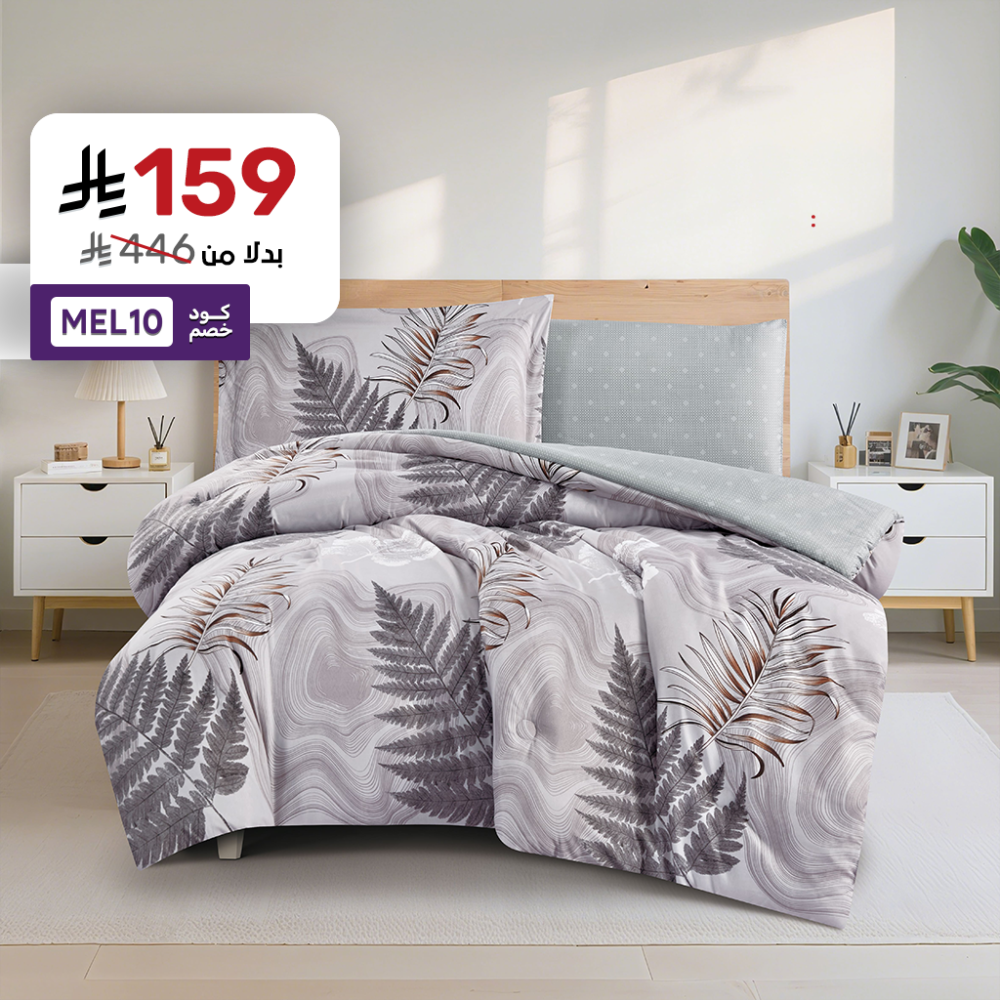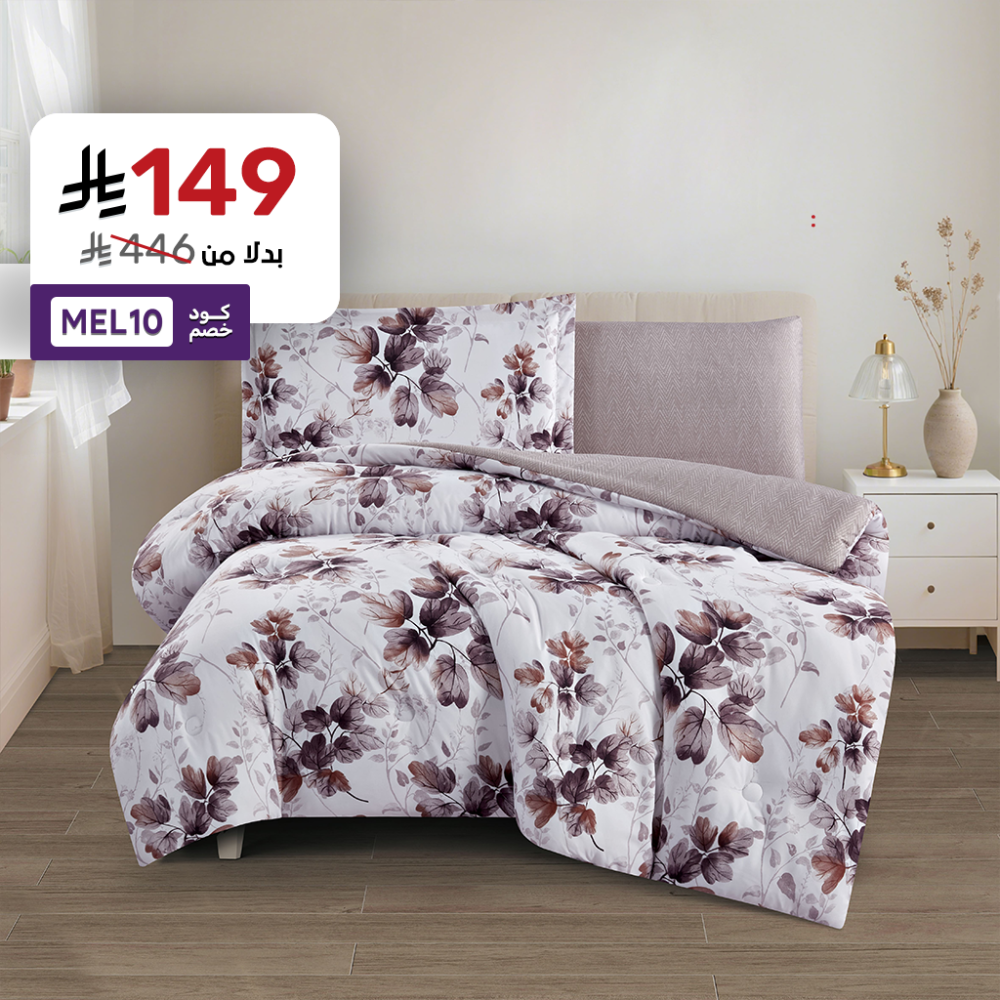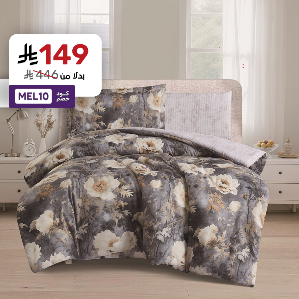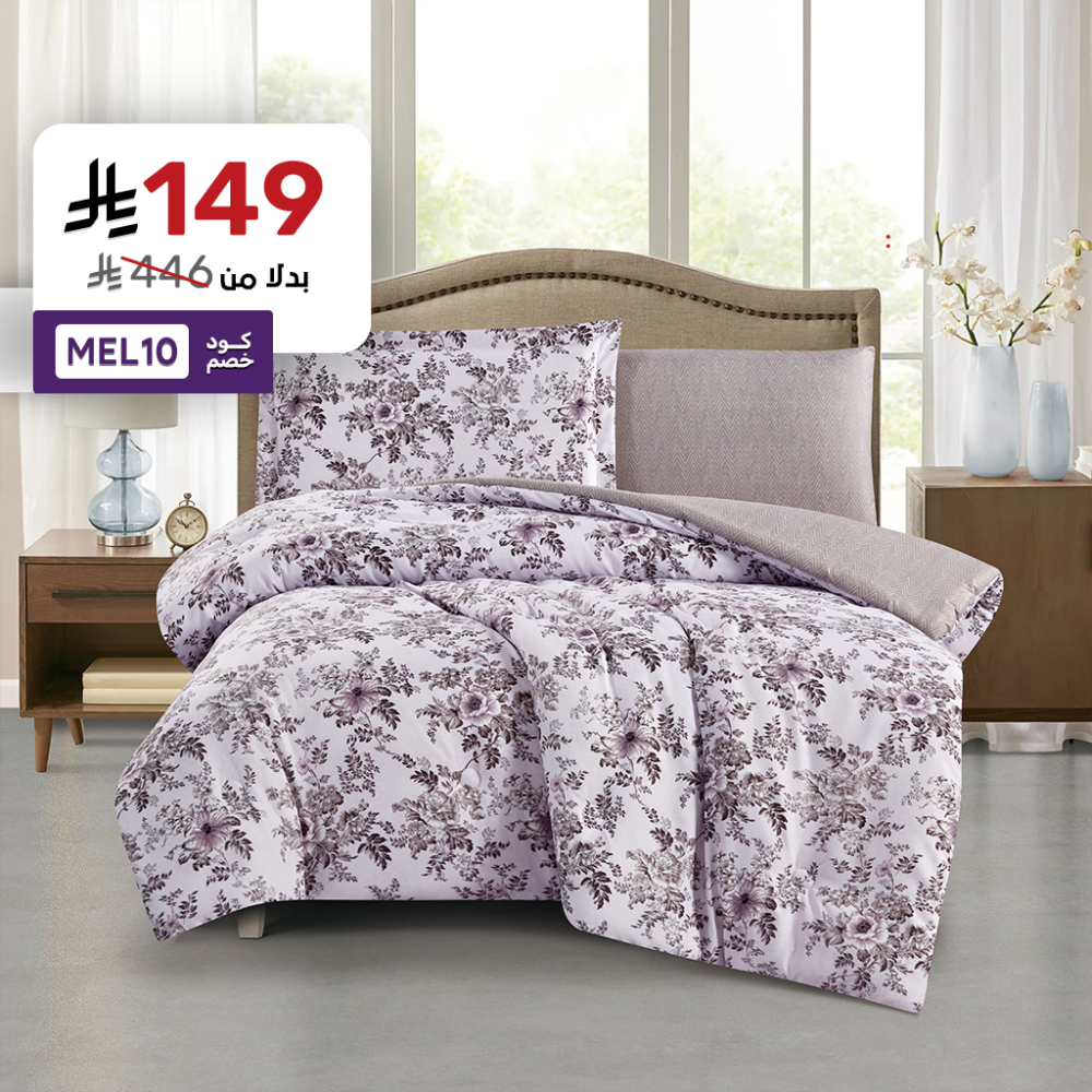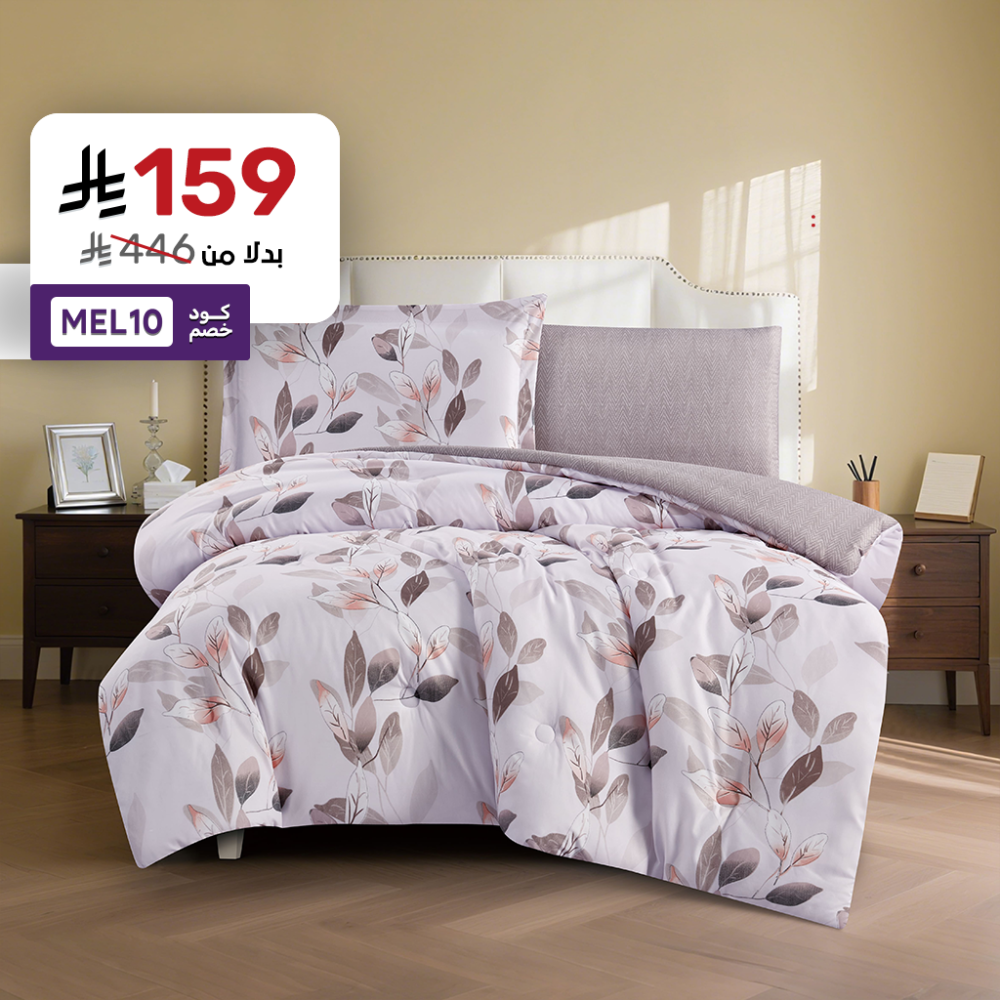 حوّل غرفة نومك إلى واحة من الراحة والجمال مع المفرش الصيفي الأنيق . صُمم بخامة ناعمة وخفيفة تمنحك برودة وانتعاش طوال الليل، مع تفاصيل أنيقة وألوان راقية تضيف لمسة سحرية لسريرك.