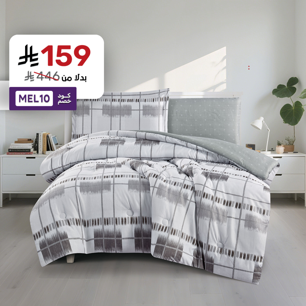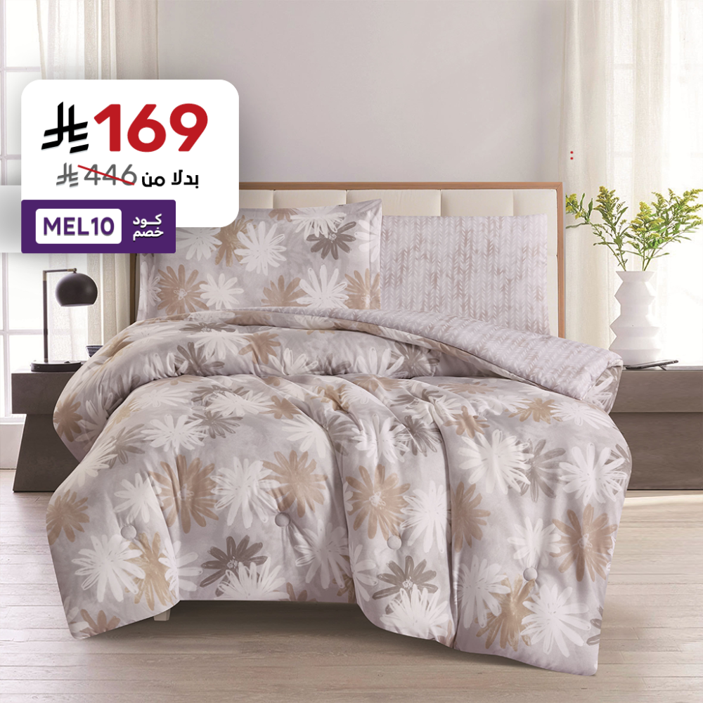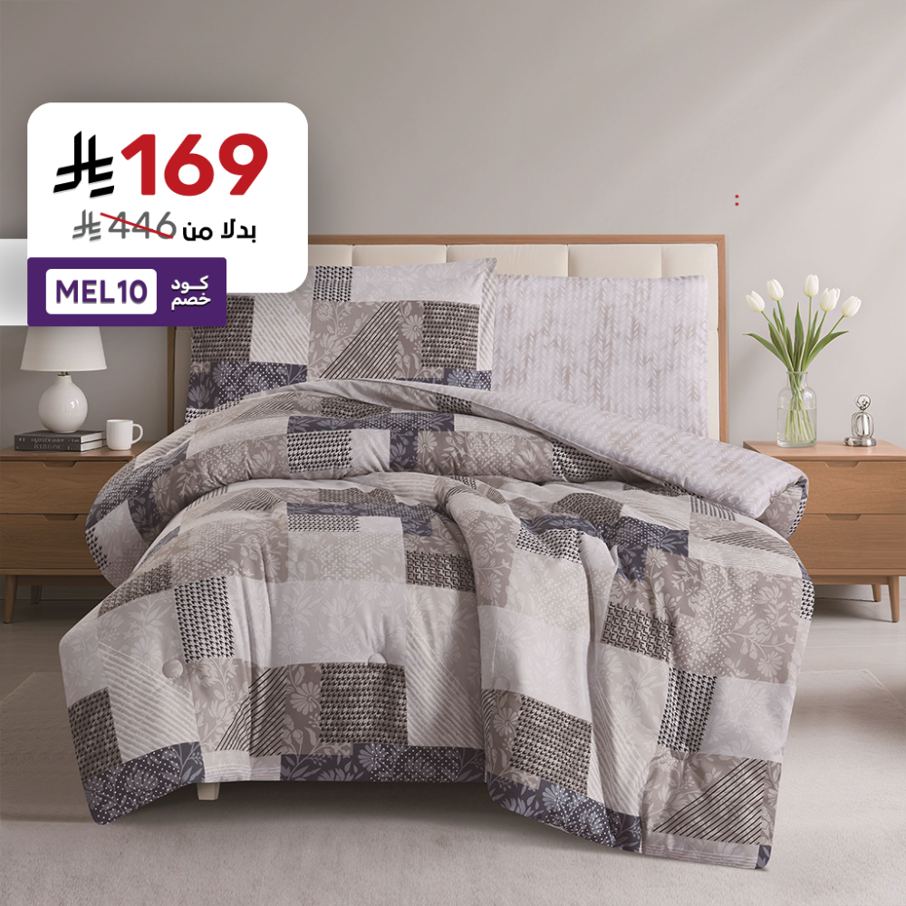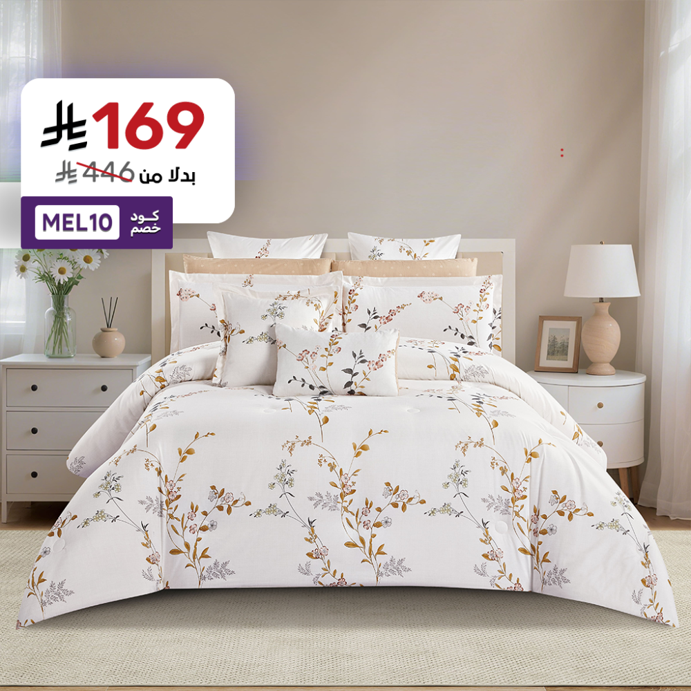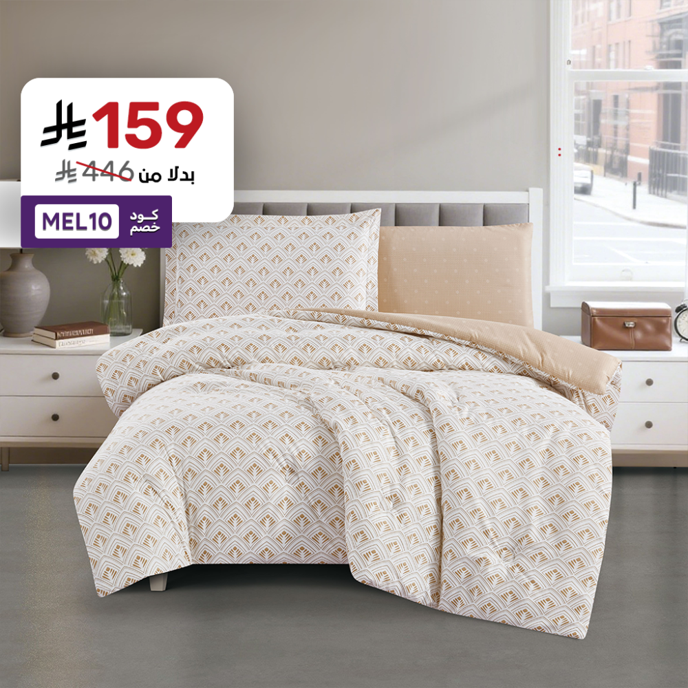 حوّل غرفة نومك إلى واحة من الراحة والجمال مع المفرش الصيفي الأنيق . صُمم بخامة ناعمة وخفيفة تمنحك برودة وانتعاش طوال الليل، مع تفاصيل أنيقة وألوان راقية تضيف لمسة سحرية لسريرك.