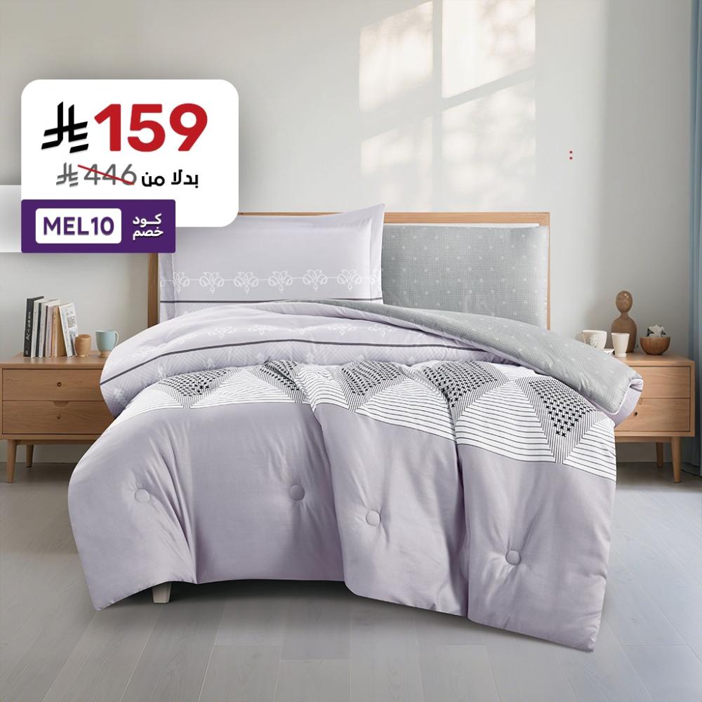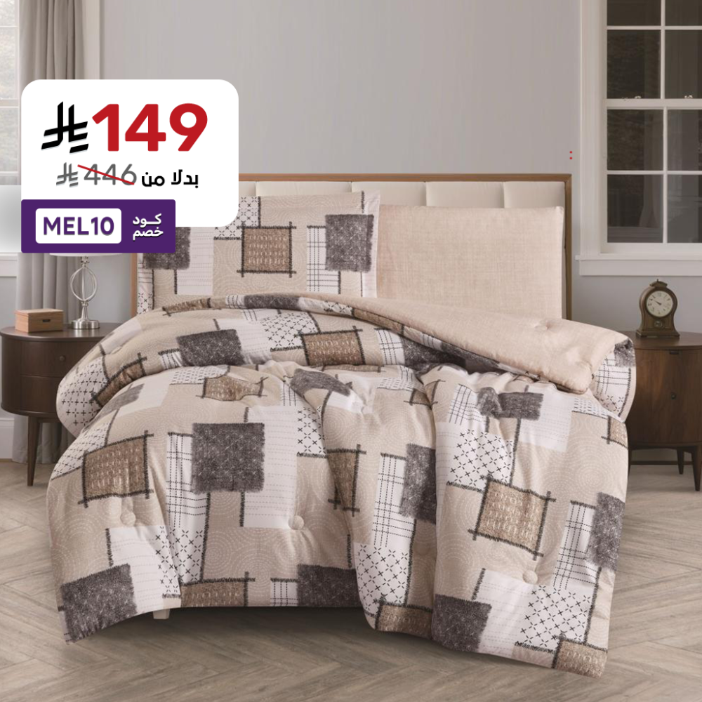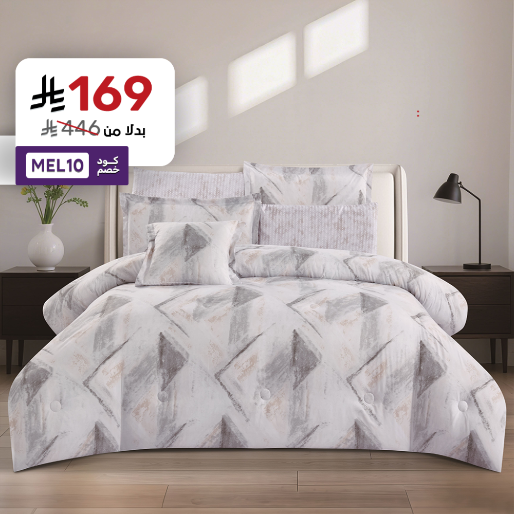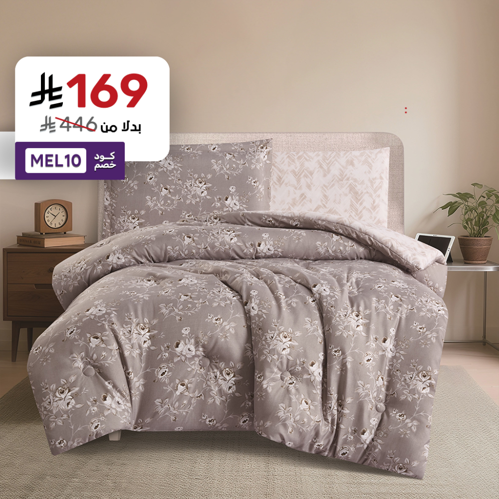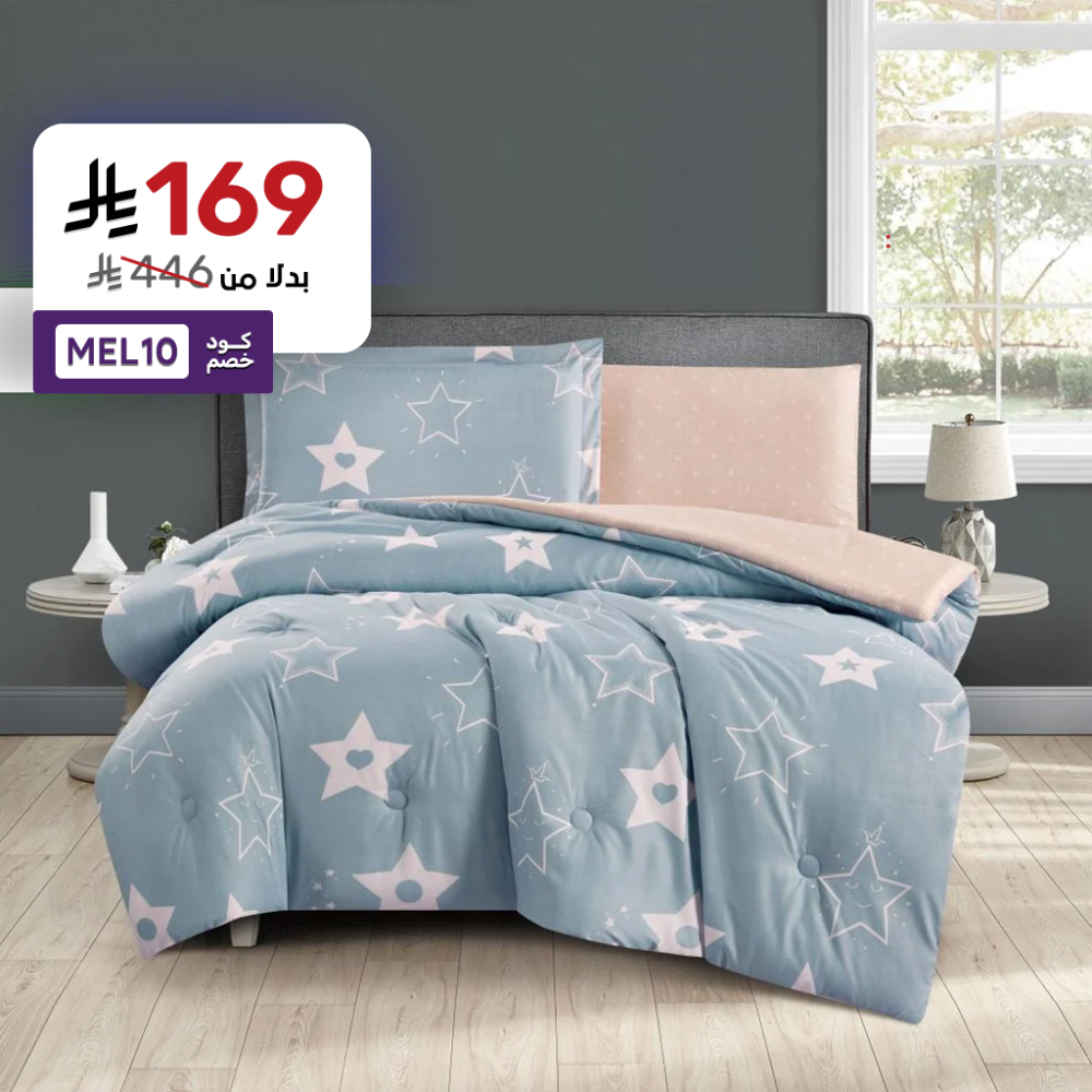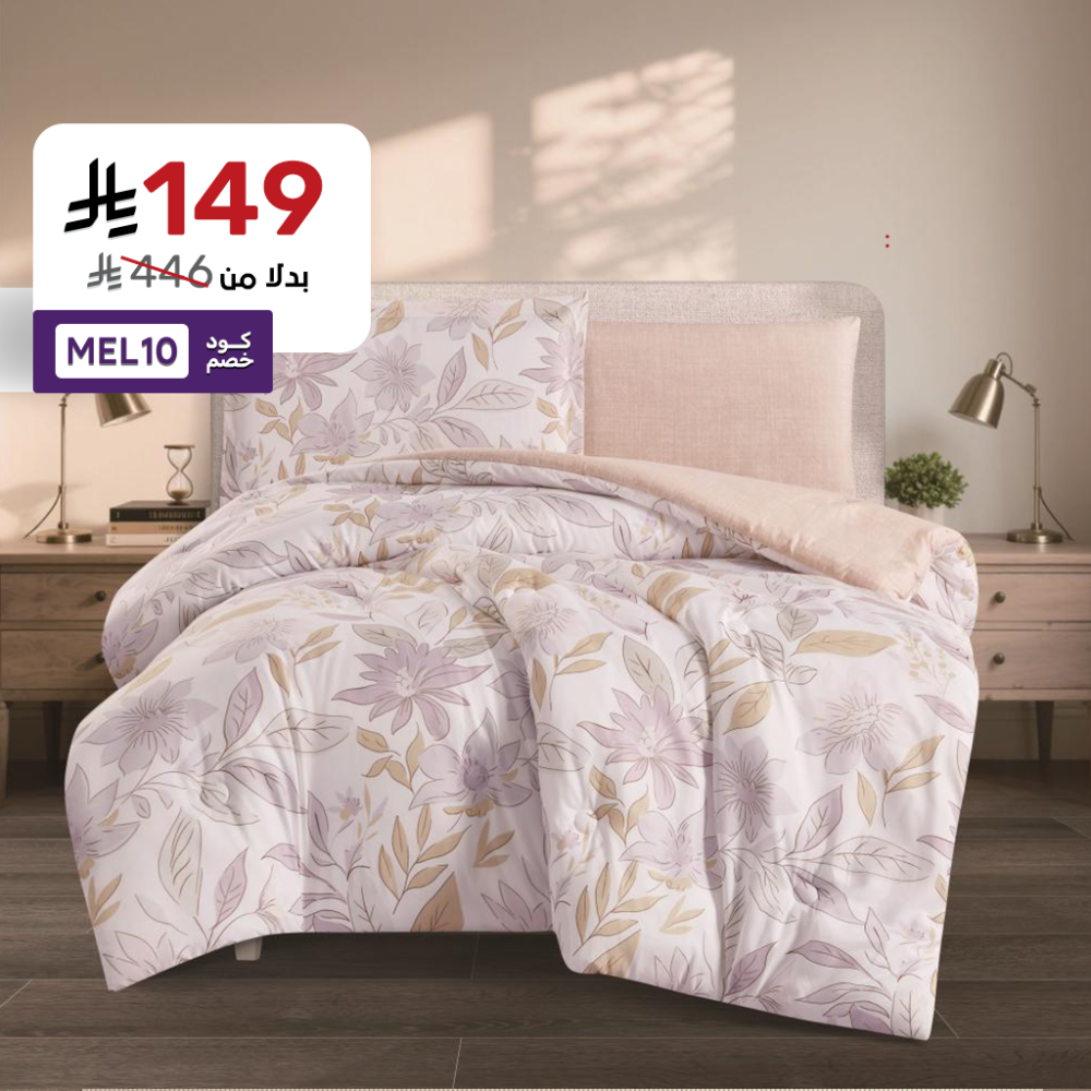 حوّل غرفة نومك إلى واحة من الراحة والجمال مع المفرش الصيفي الأنيق . صُمم بخامة ناعمة وخفيفة تمنحك برودة وانتعاش طوال الليل، مع تفاصيل أنيقة وألوان راقية تضيف لمسة سحرية لسريرك.