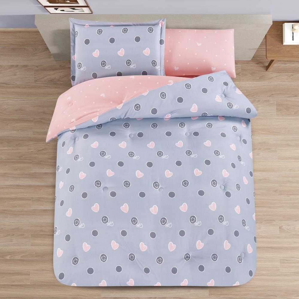مفرش صيفي مفرد ونص 4 قطع - اليساندرا - رصاصي - وردي